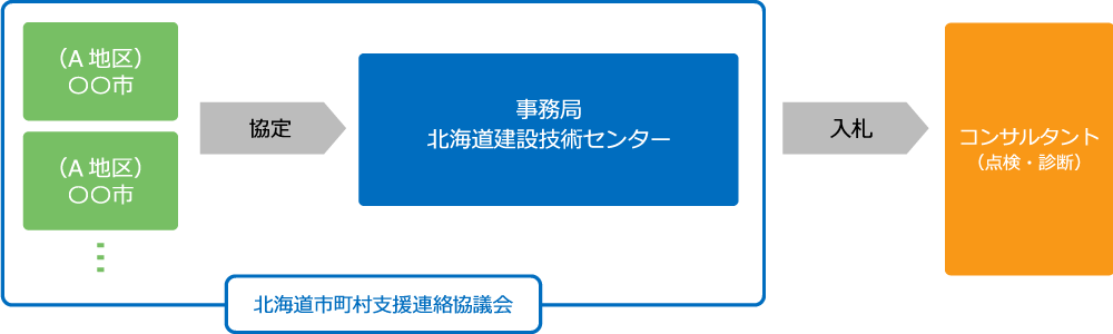 市町村の橋梁点検を効率的・効果的に行うため、近隣の市町村橋梁点検をまとめて発注する市町村橋梁点検地域一括発注を行っております。